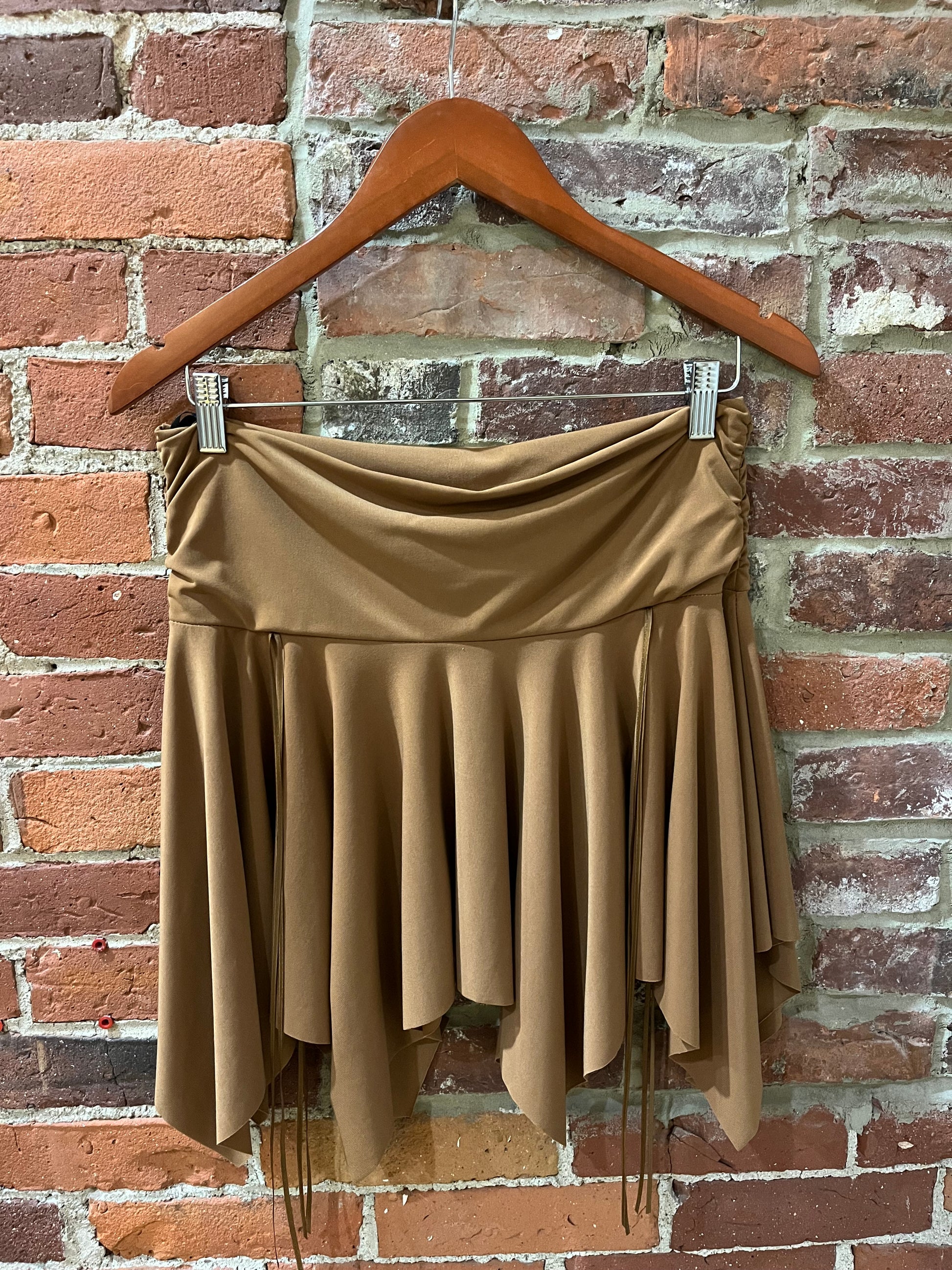 Brown mini skirt, very stretchy and swishy. Illusion by Mercury brand.