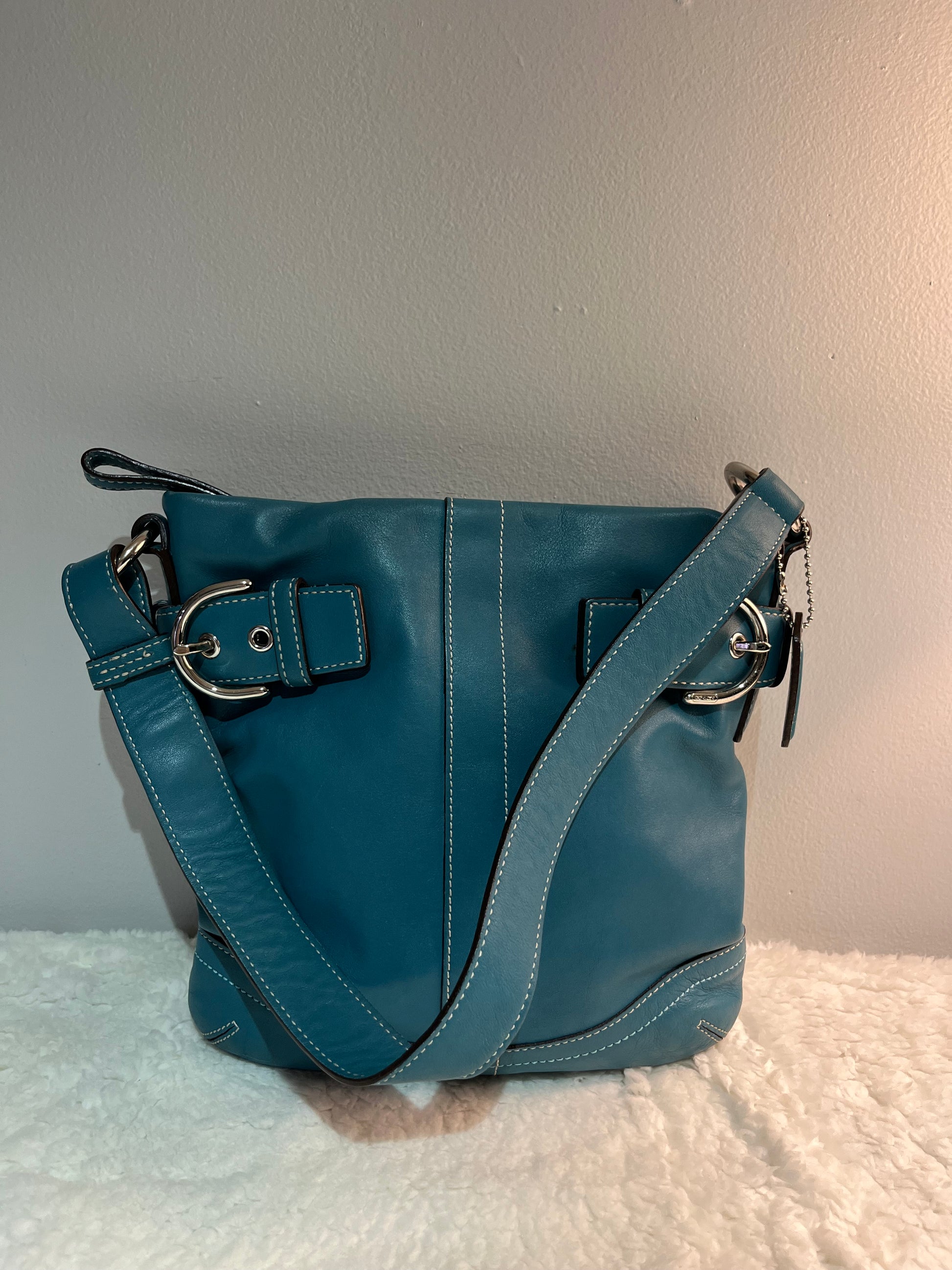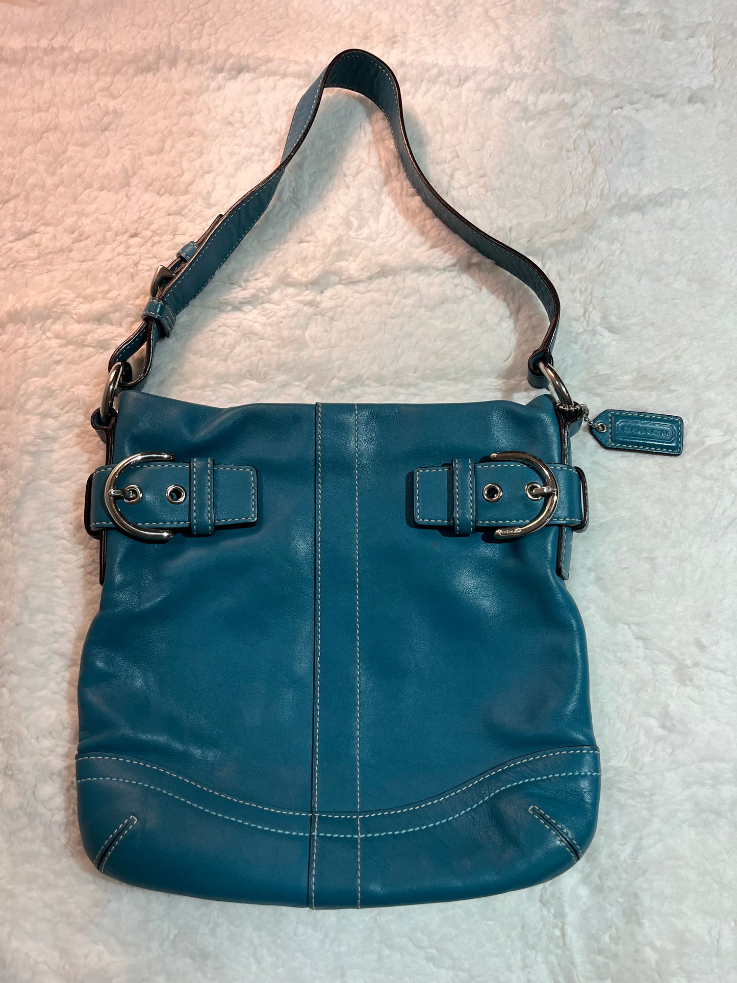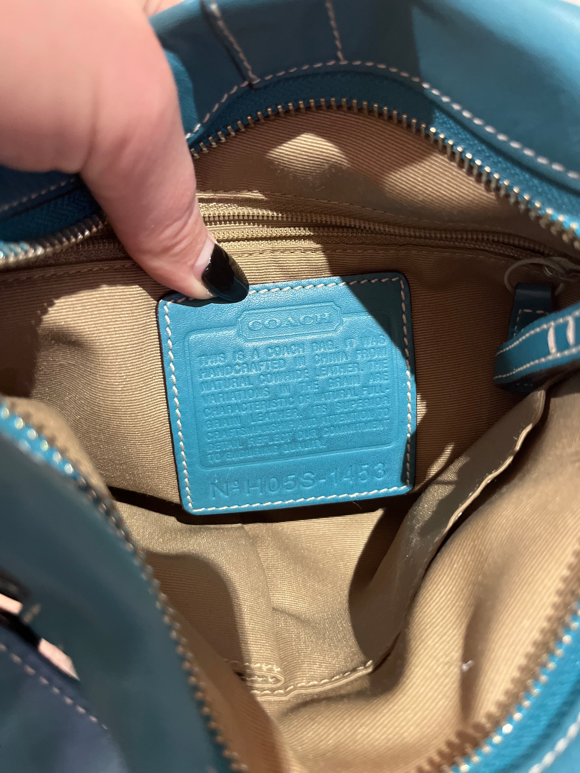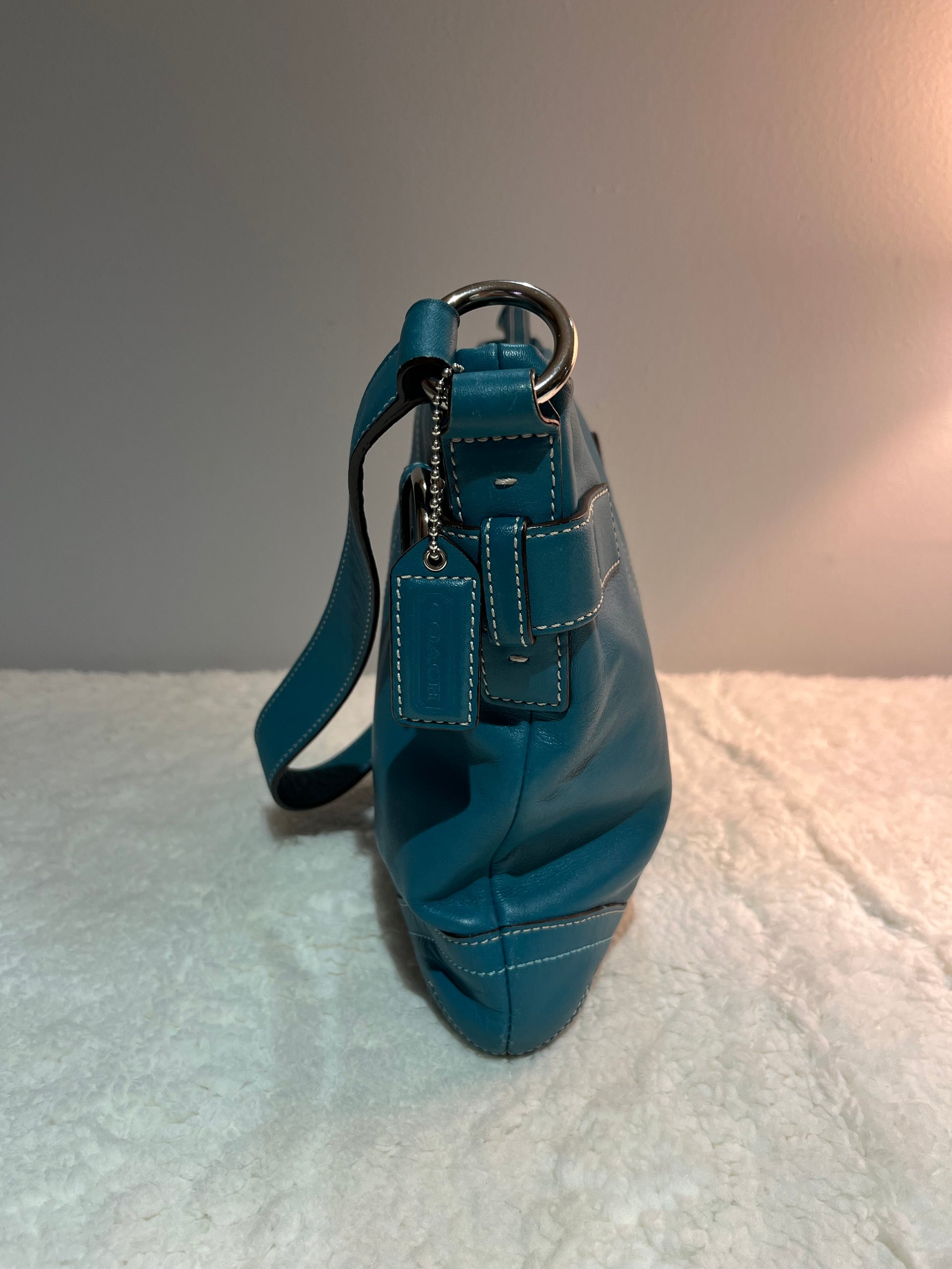 Teal coach bag ion perfect condition, no signs of wear on interior or exterior! Zipper pocket on inside as well as other smaller open pockets.