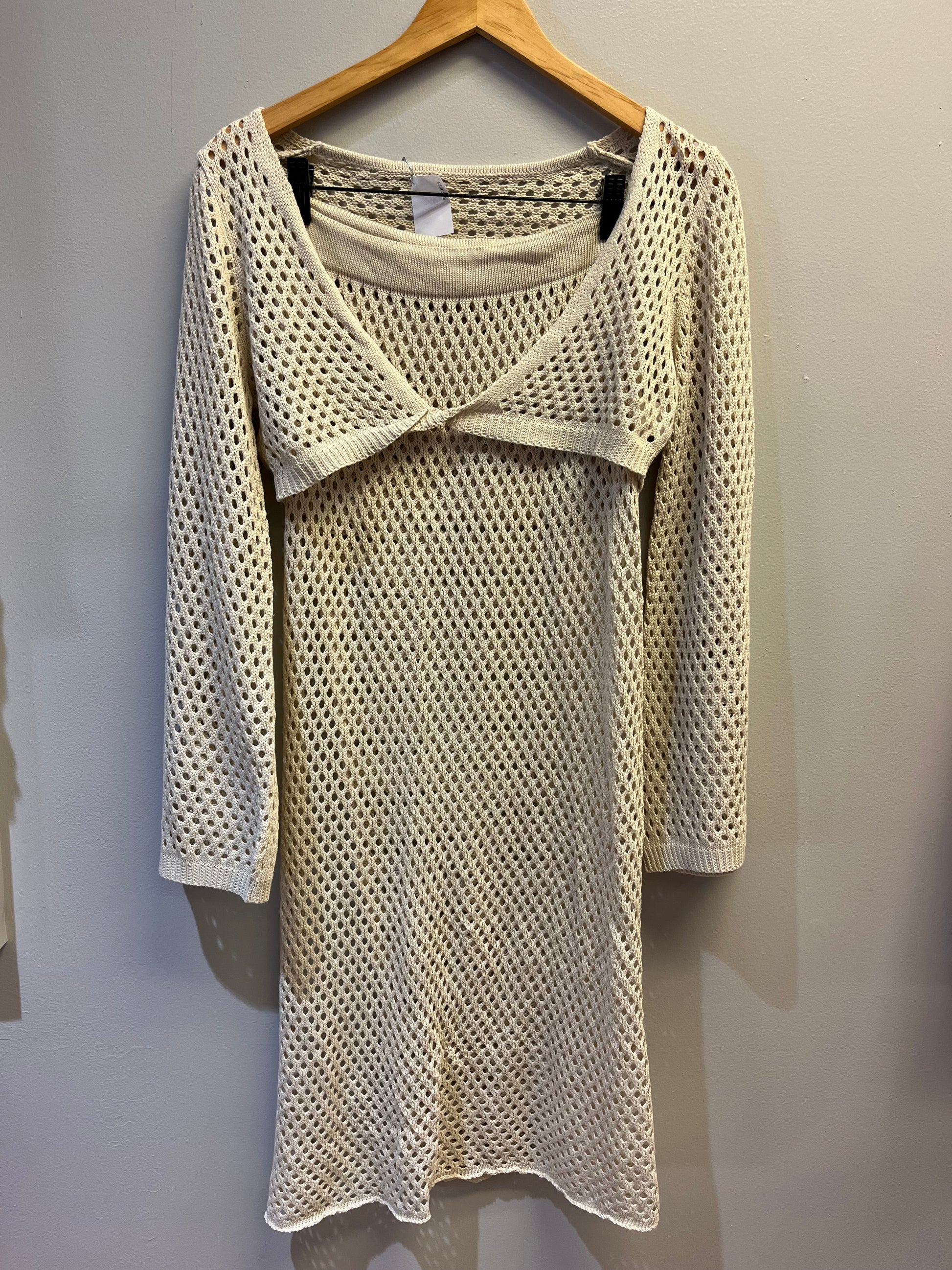 Size small crochet skirt and crop top set. Super cute for a cover up! The skirt ties in the waist.