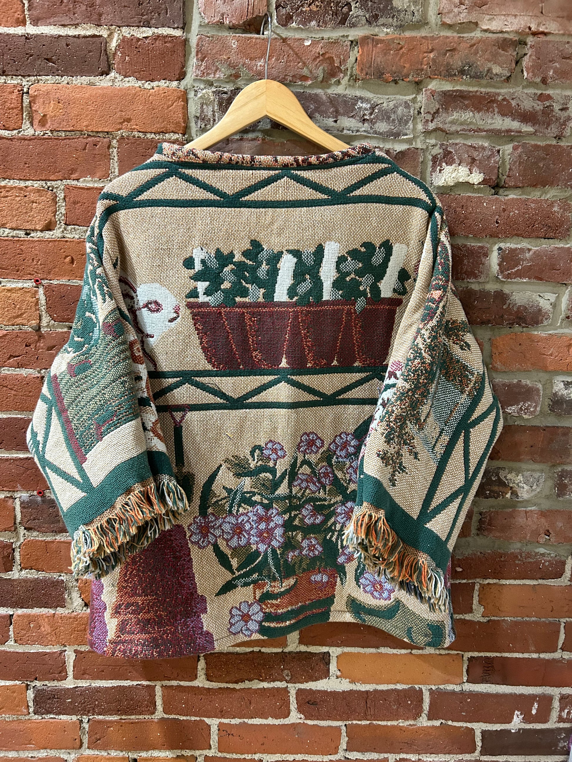 Size large Swanket. Super thick and comfortable. Made from second hand tapestry blanket.