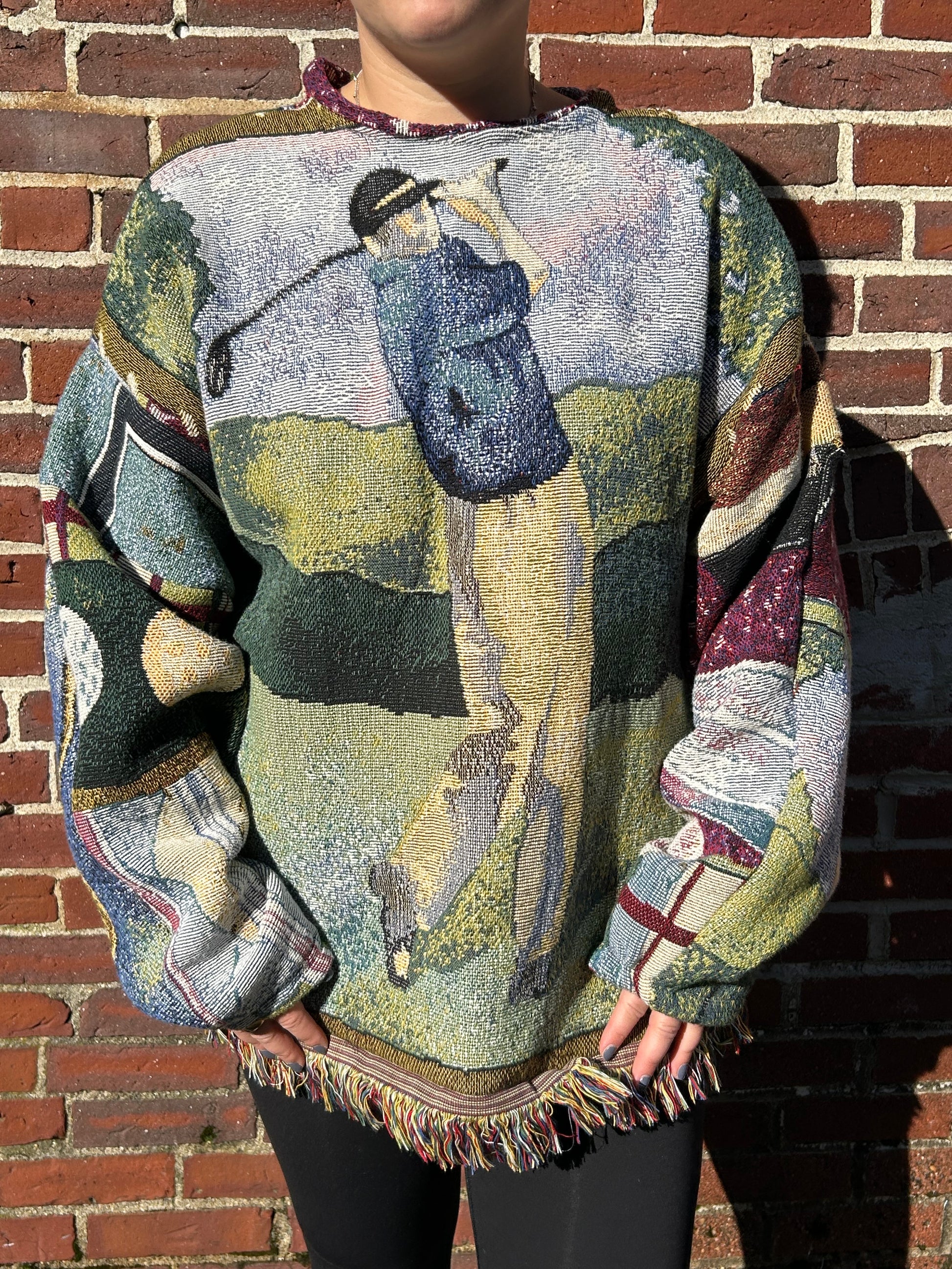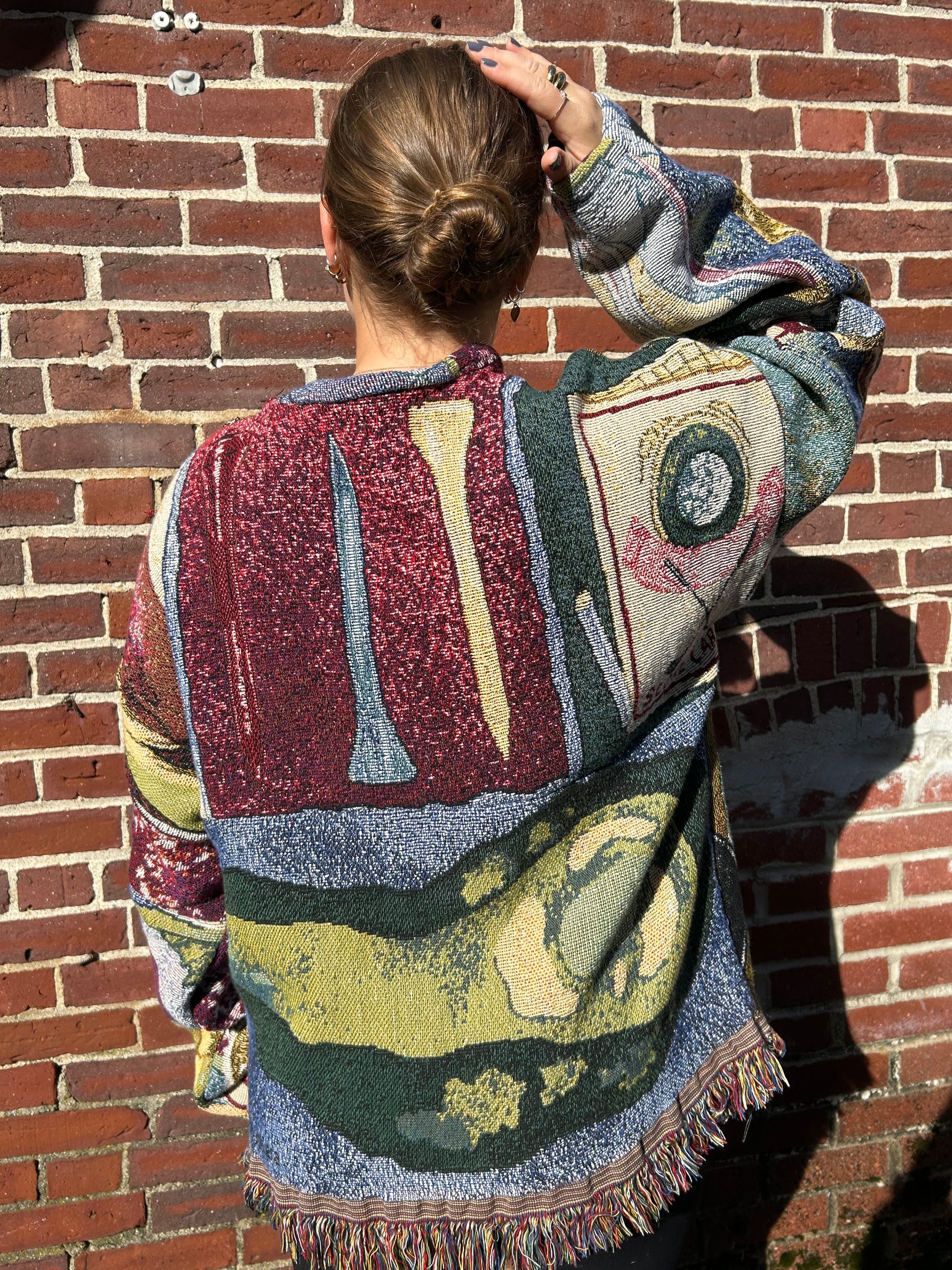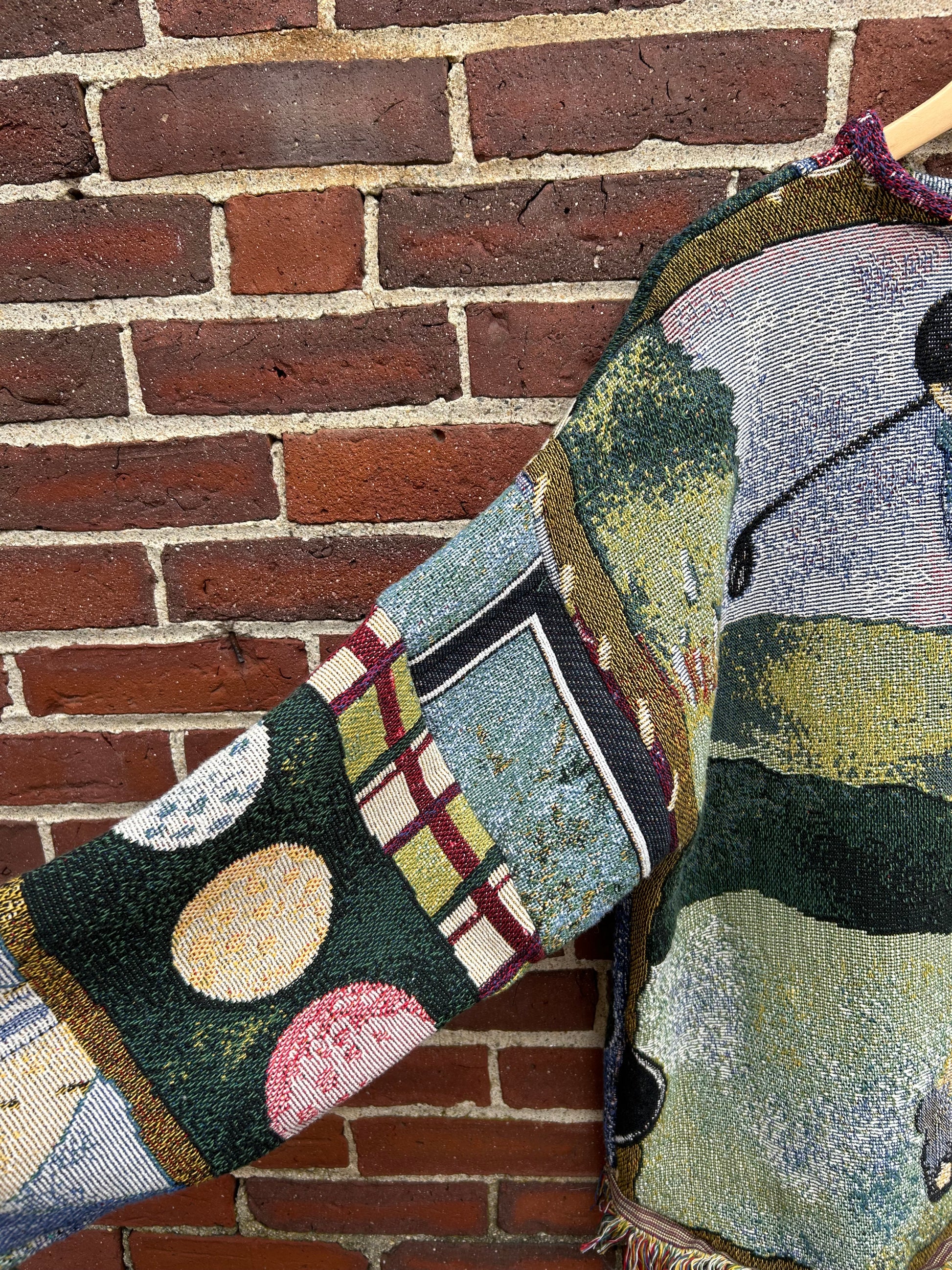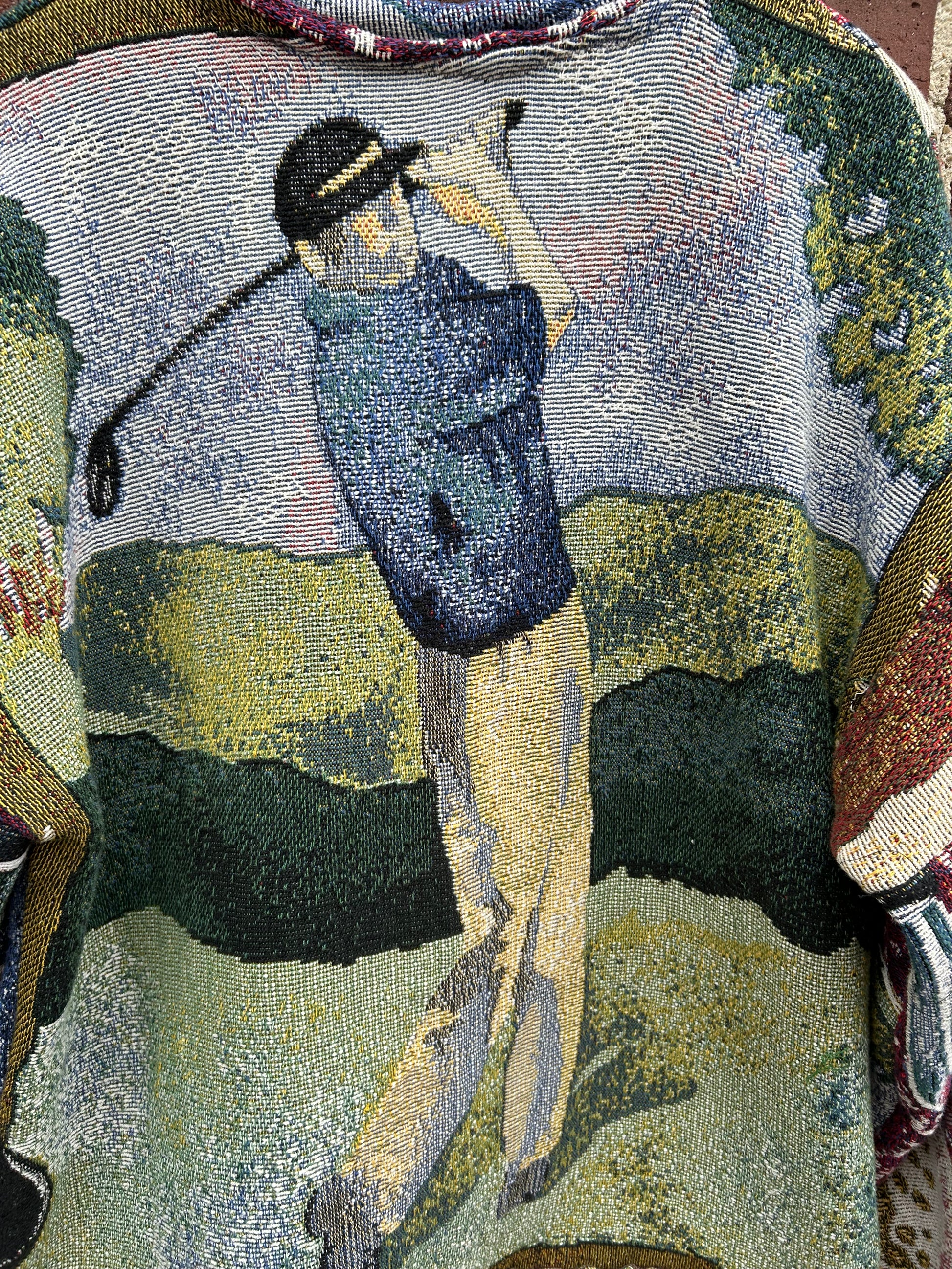 Size large upcycled swanket made from a second hand gold blanket. It’s heavy and warm.