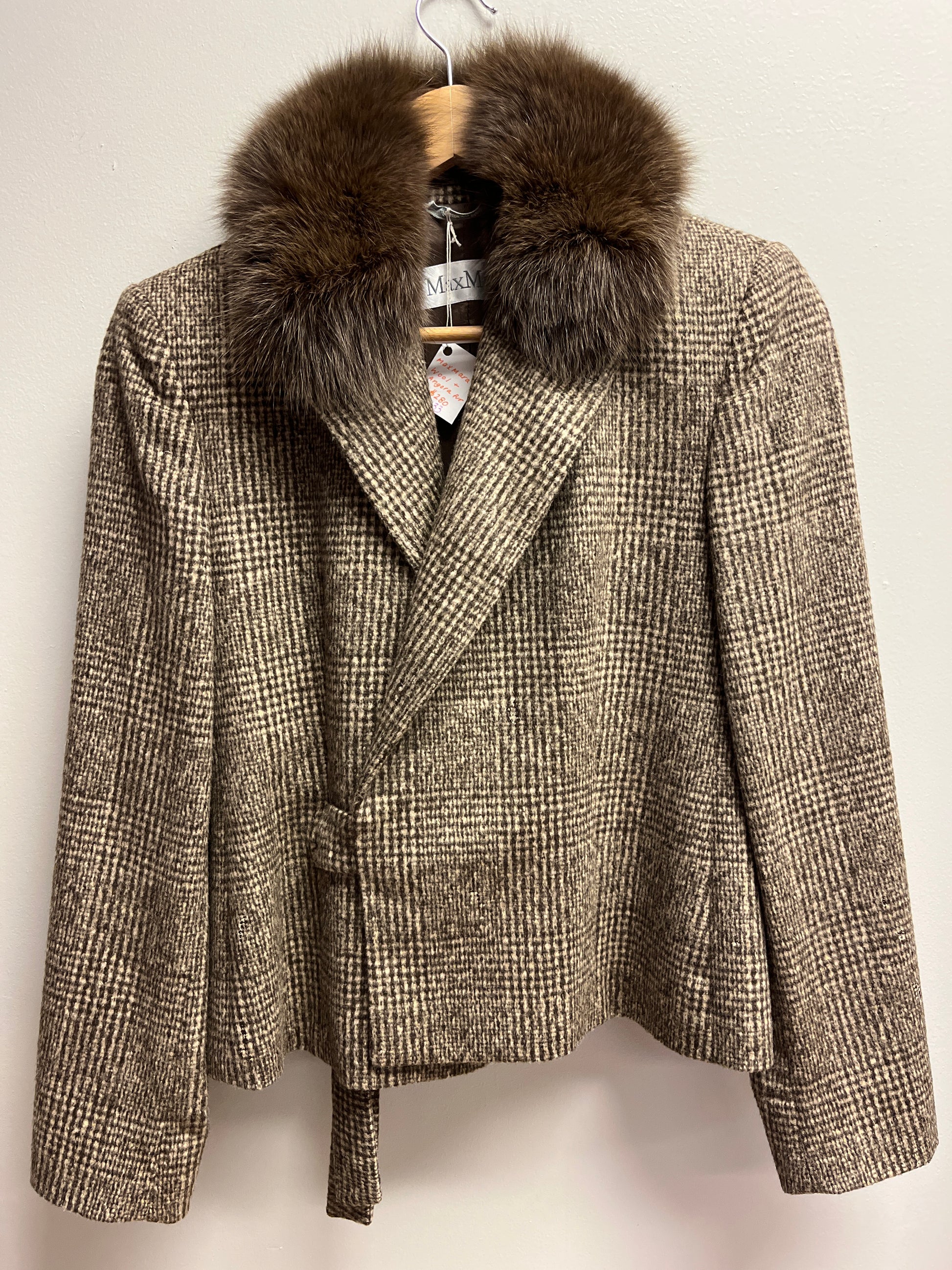 Size 2/4 MaxMara jacket. Angora rabbit fur collar and 100% wool coat. In perfect condition. Incredible coat in Preston’s condition.