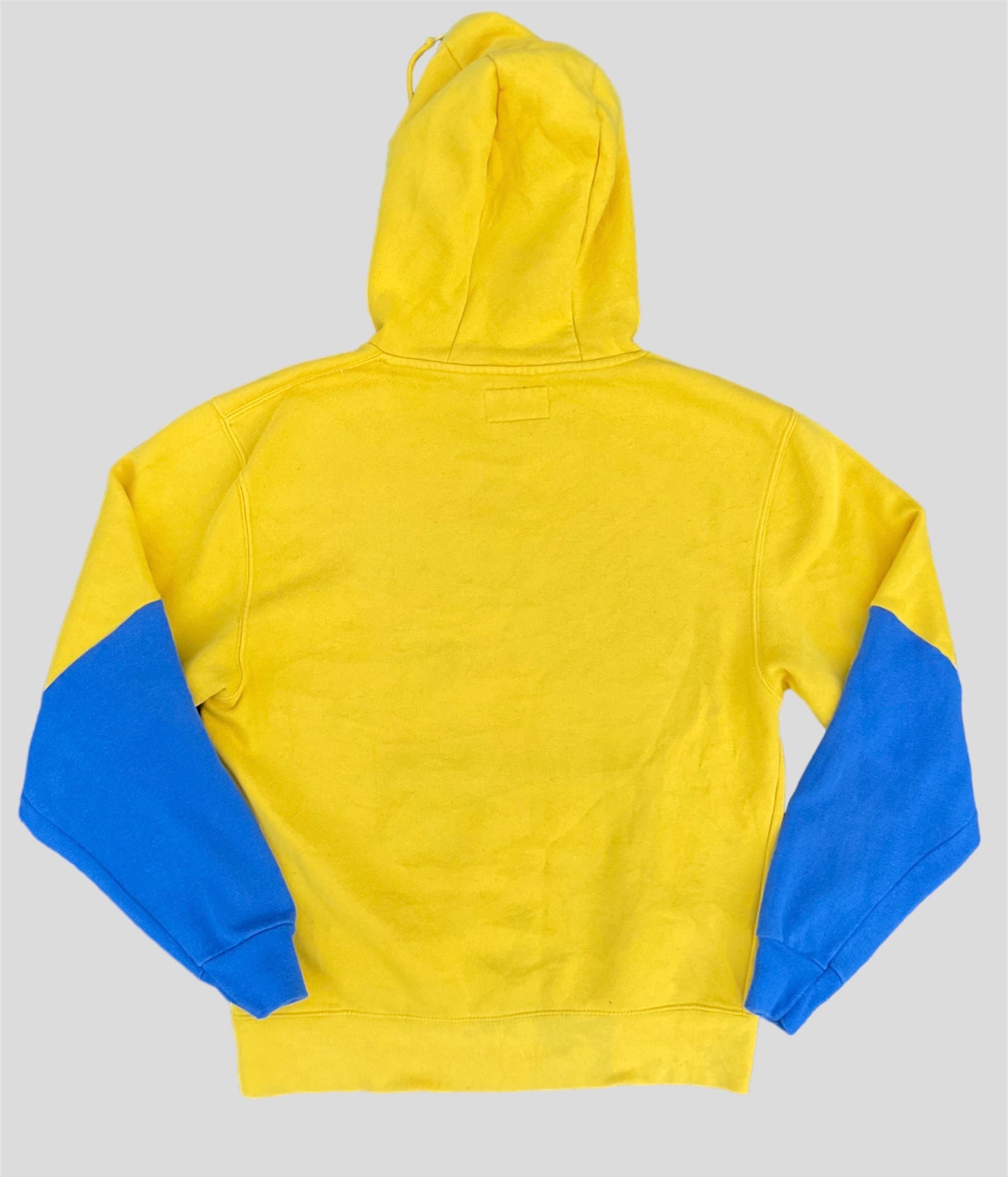 Upcycled into a funky and bright hoodie.