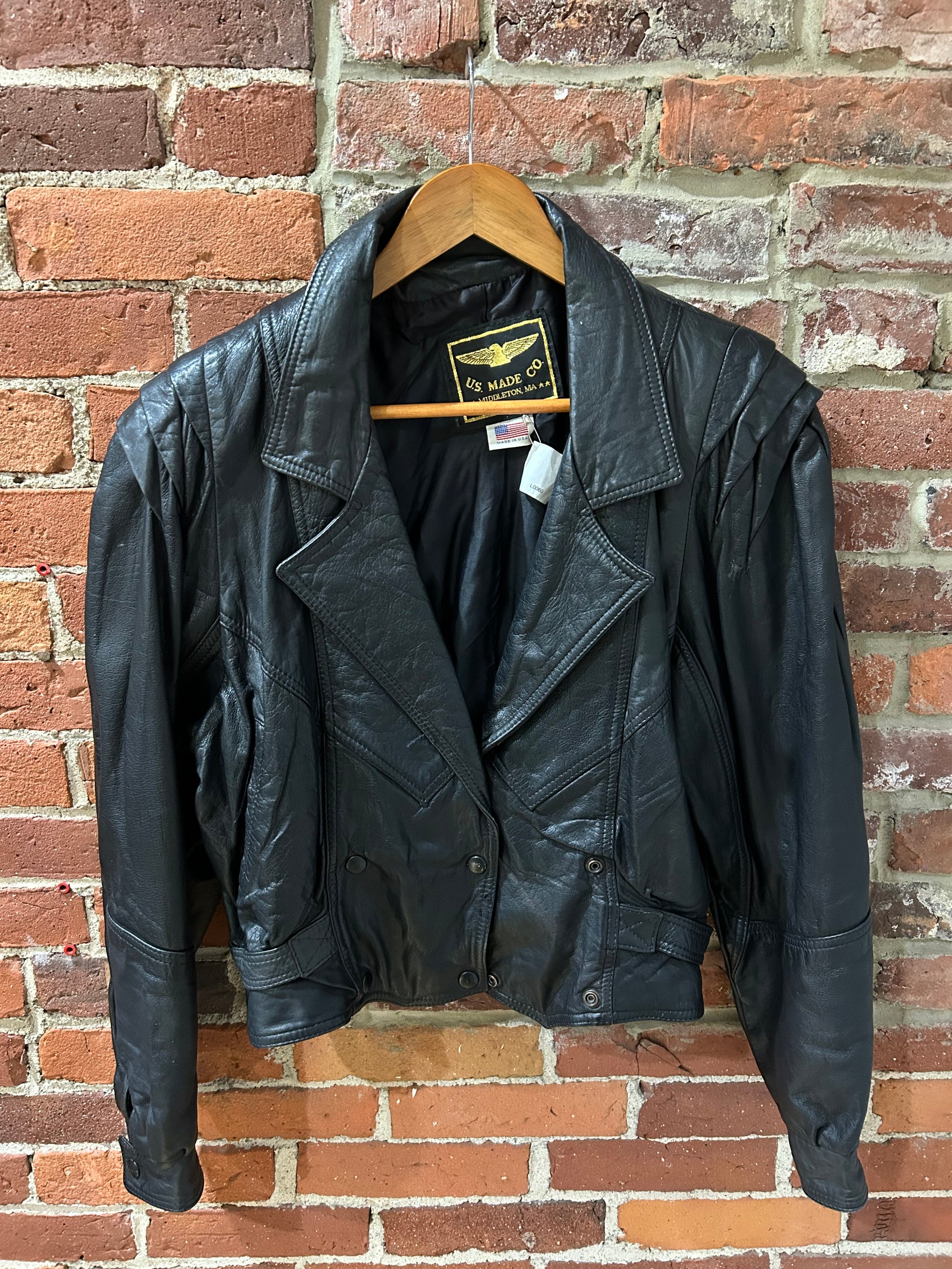Made in Middleton Massachusetts. Size small/ XS. 100% leather. Two zippered pockets on outside.