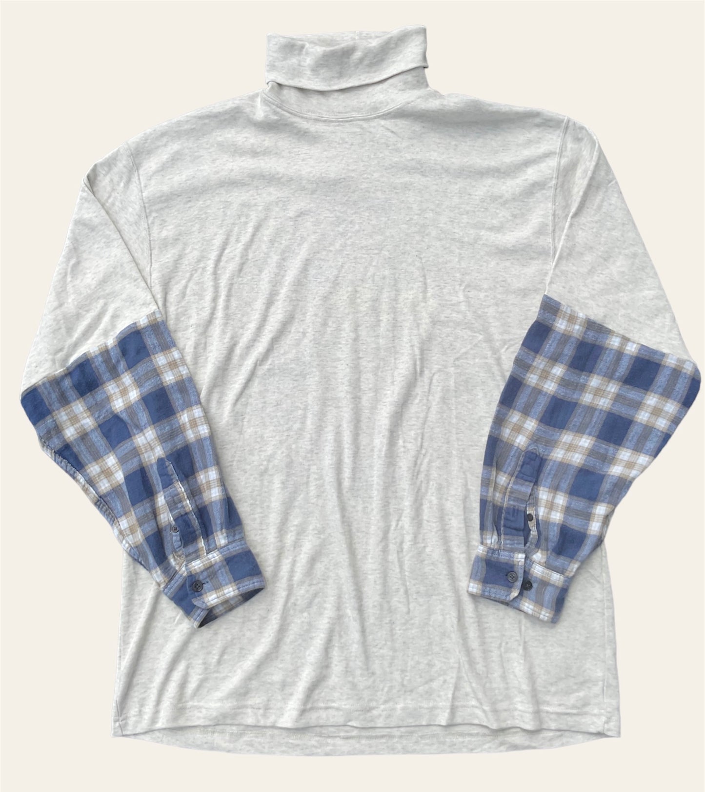 Upcycled turtleneck with flannel sleeves. XL and very soft!!