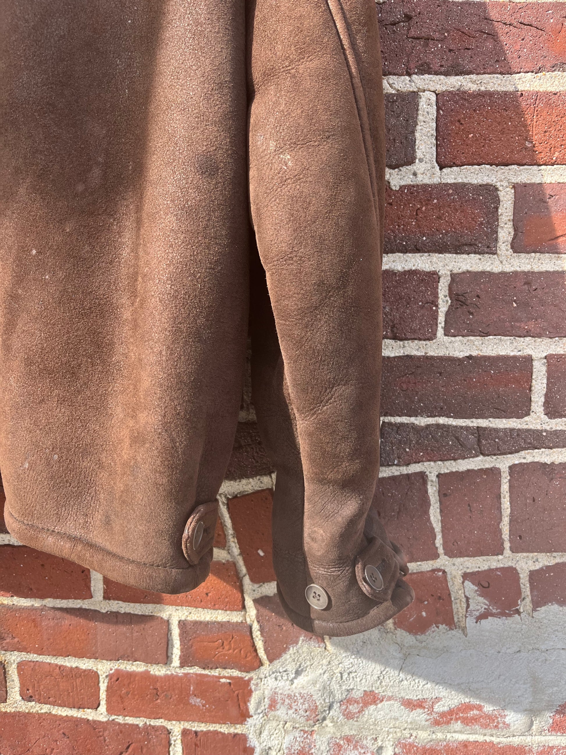 Men’s size small, would fit women’s medium/large as it is oversized. Lined with thick faux fur. 100% genuine leather shell. In perfect condition.
