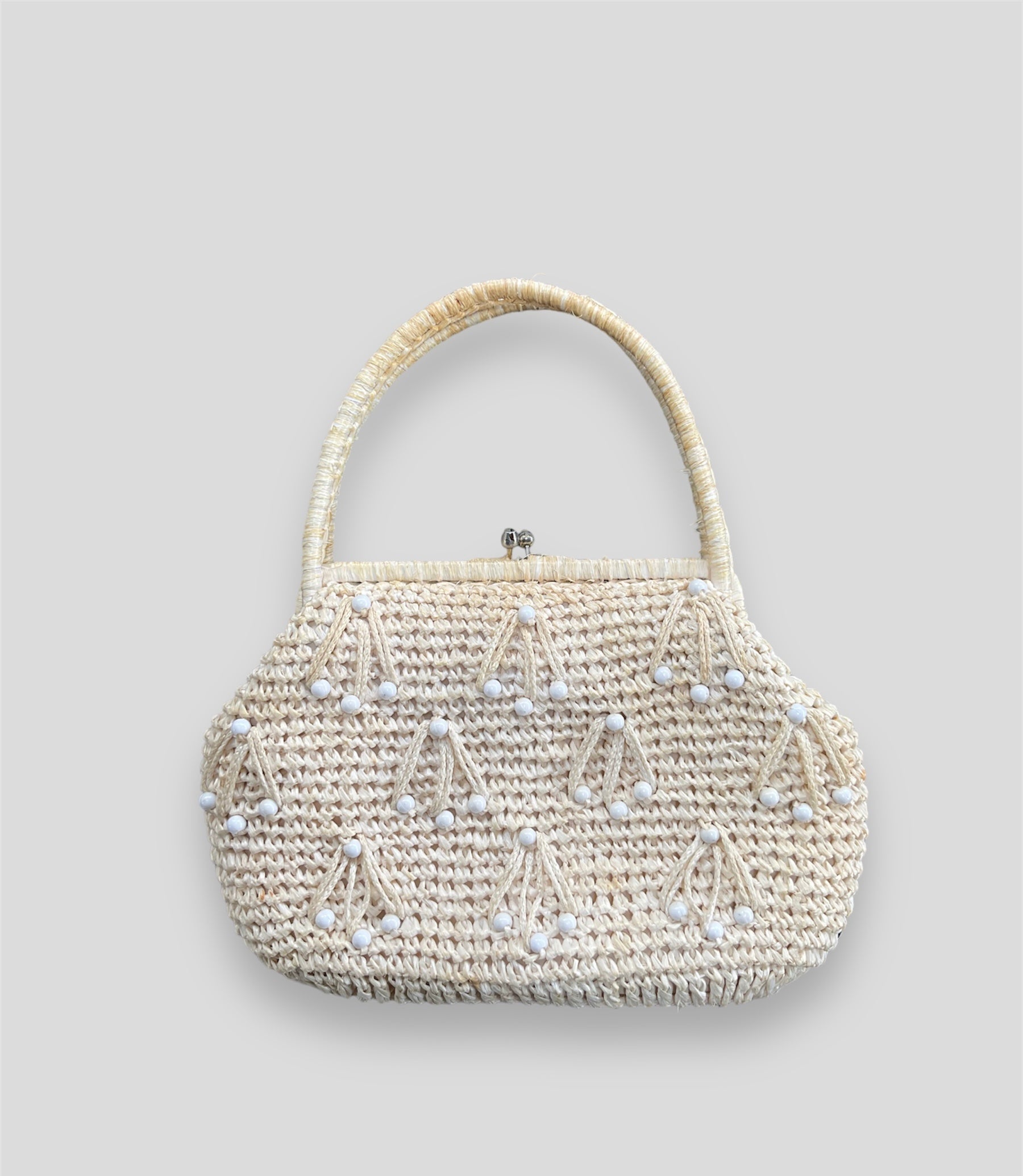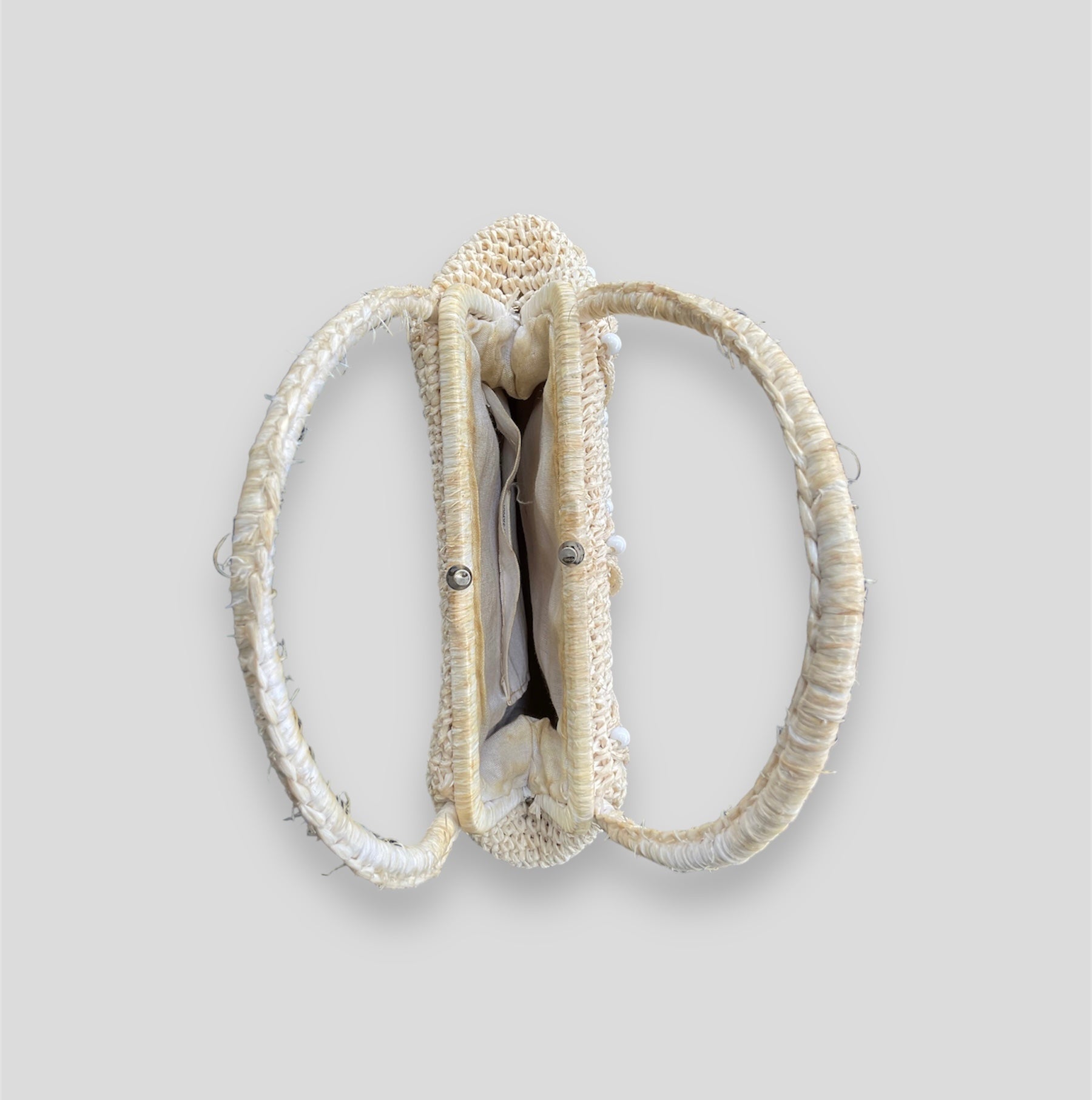 This super cute and summery purse is in great condition. All beads are in fact still attached to the bag. There are slight signs of wear on the interior but it has been cleaned (like everything else!).