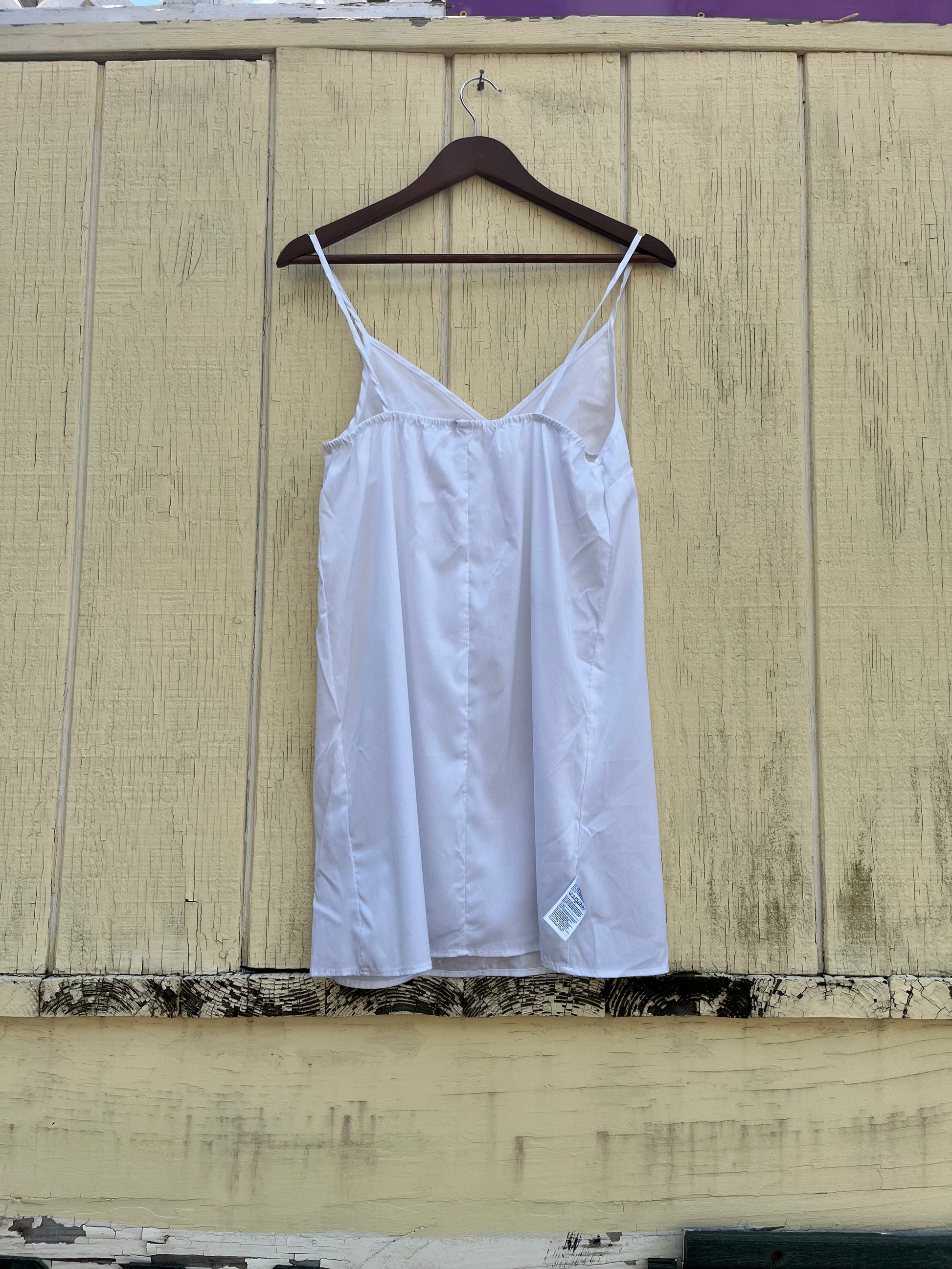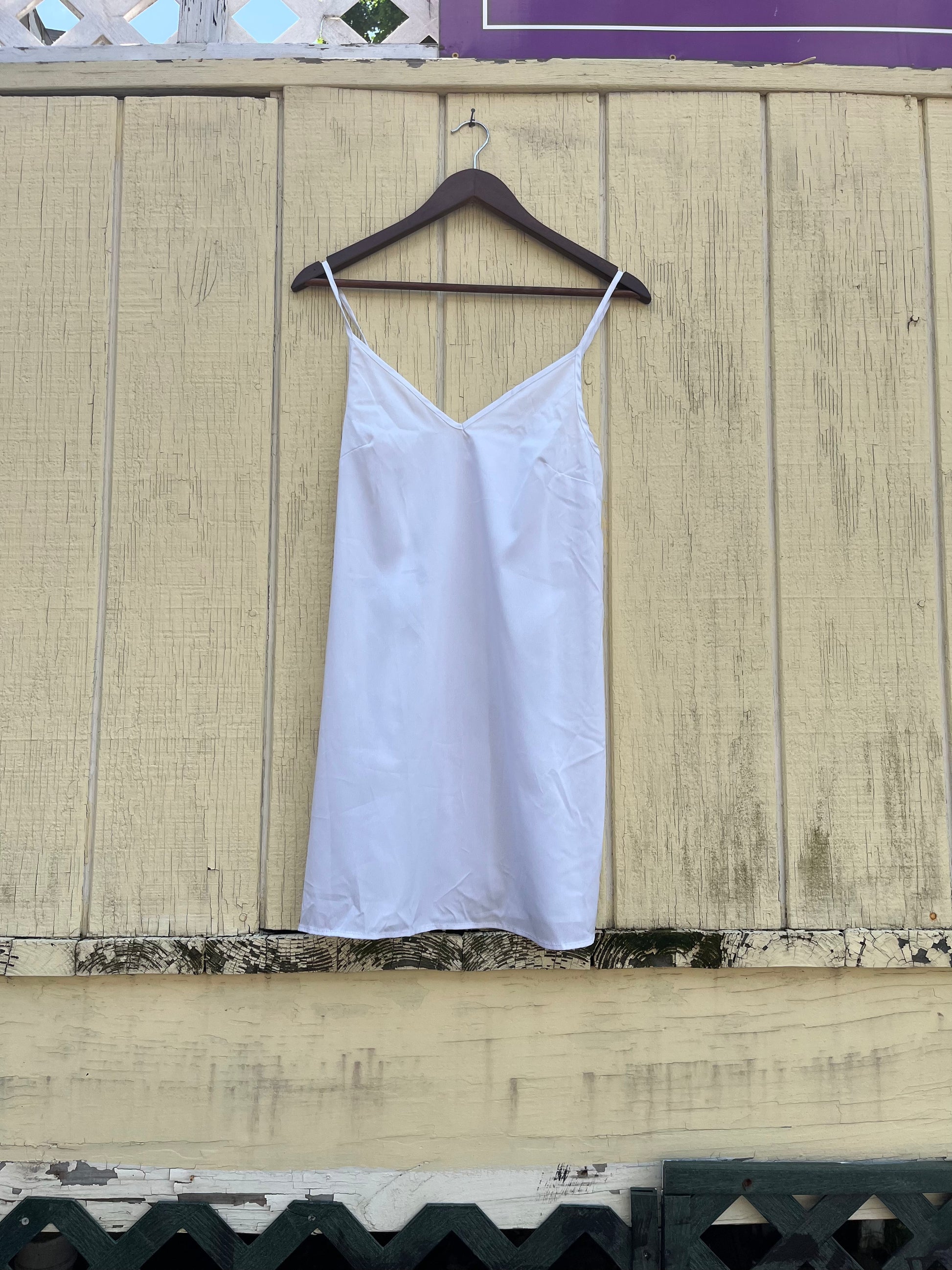 This slip is the lining salvaged from another dress, so the care instruction tag is sewn to the “outside” of the seam