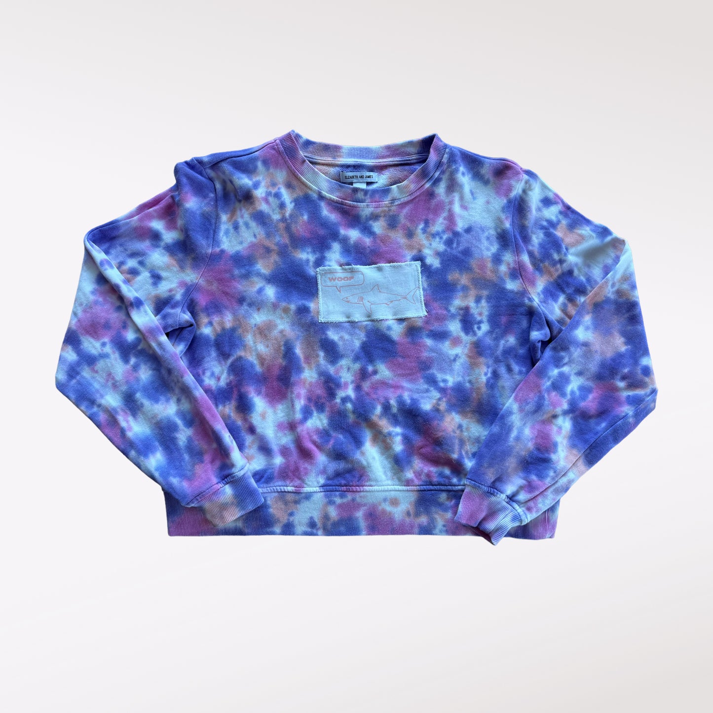 Crewneck sweatshirt with a funky patch sewn on. Cute shark. Size small.
