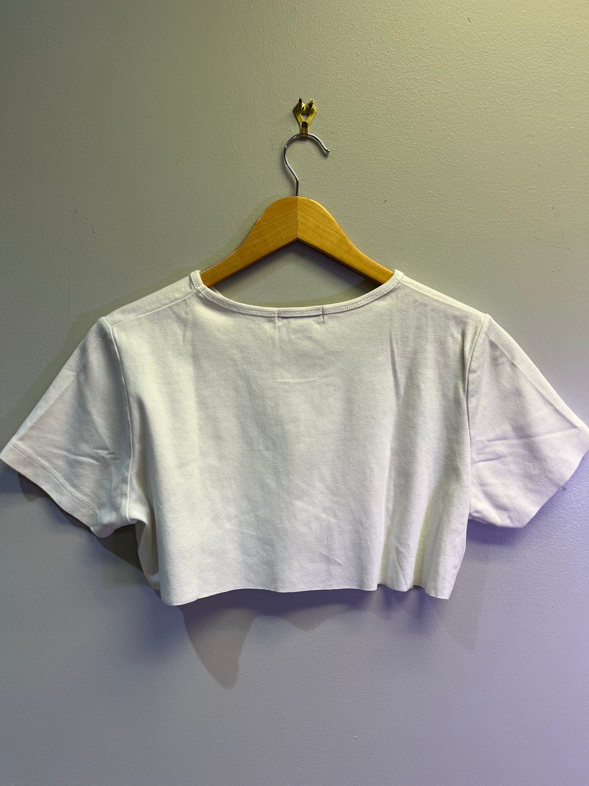 Super cropped top. Size large but would fit a small best because of how cropped it is.